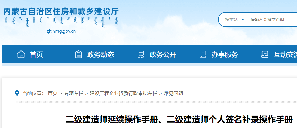 內(nèi)蒙古二級建造師延續(xù)操作手冊、二級建造師個人簽名補錄操作手冊