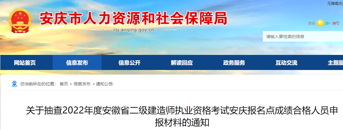 抽查2022年安徽二級(jí)建造師考試安慶報(bào)名點(diǎn)成績(jī)合格人員申報(bào)材料的通知
