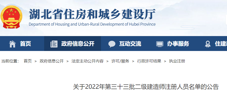湖北關(guān)于2022年第三十三批二級建造師注冊人員名單的公告