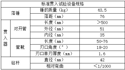 標(biāo)準(zhǔn)貫入試驗的設(shè)備規(guī)格如下: