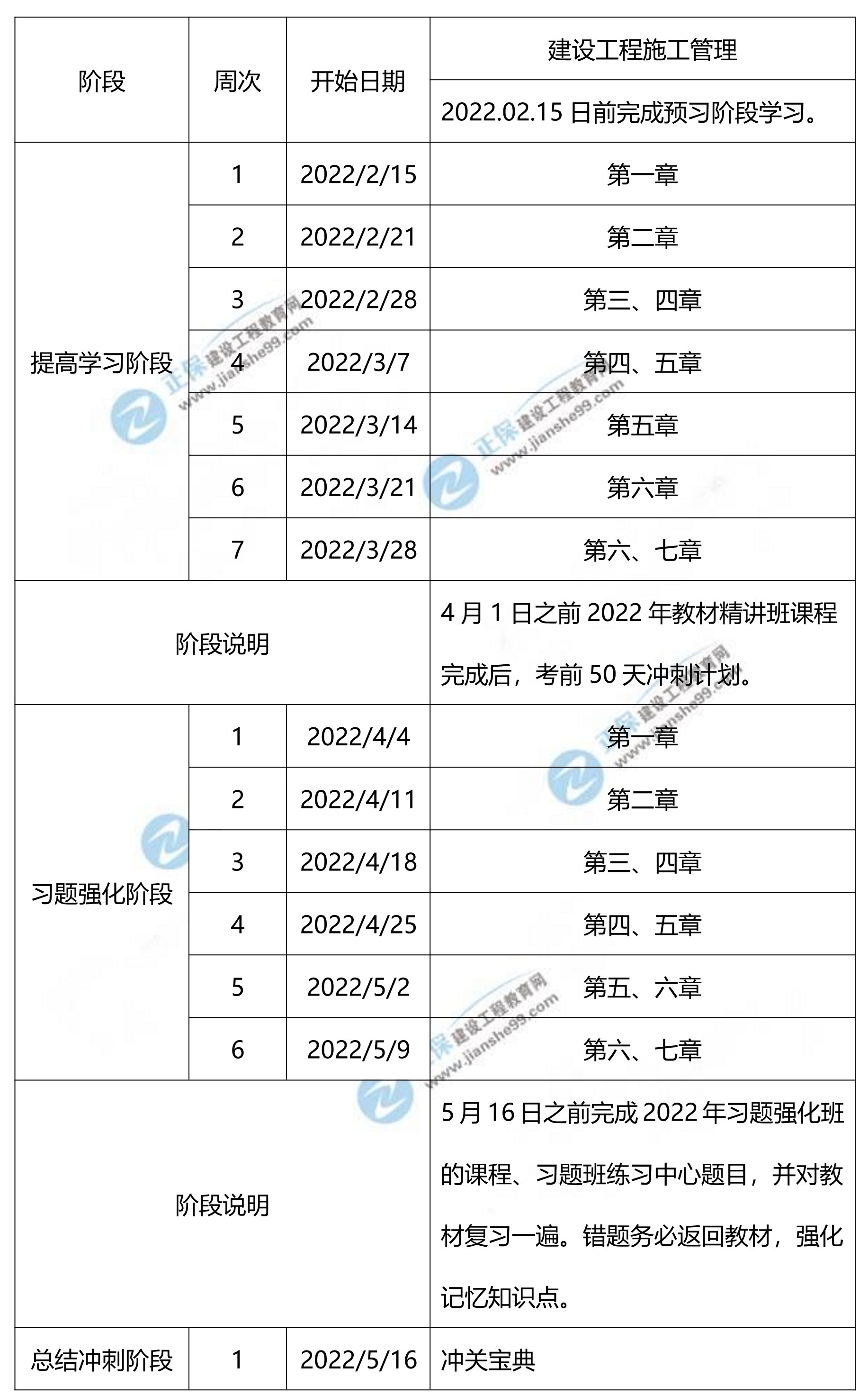 2022年二級(jí)建造師施工管理學(xué)習(xí)計(jì)劃