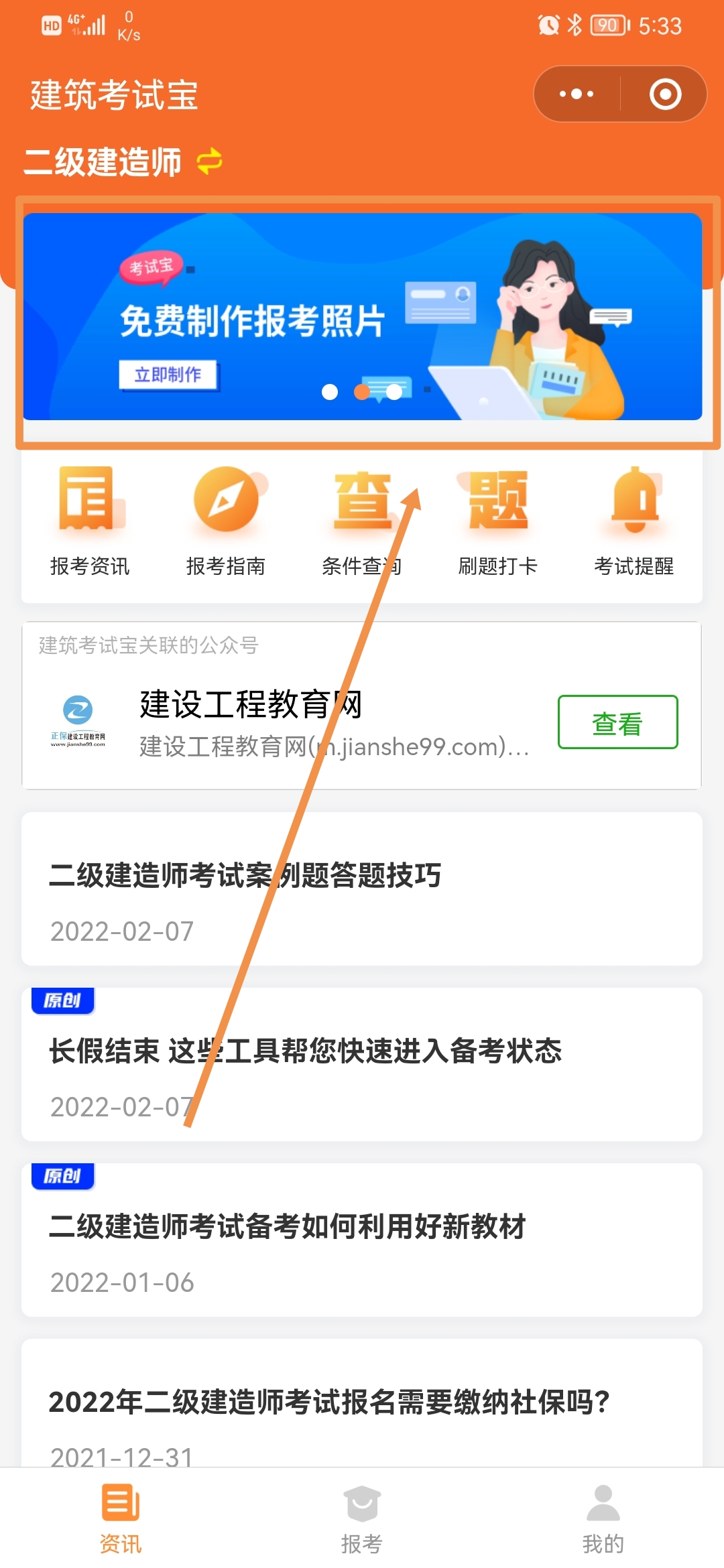 3.點(diǎn)擊上方“免費(fèi)制作報(bào)考照片”圖片。
