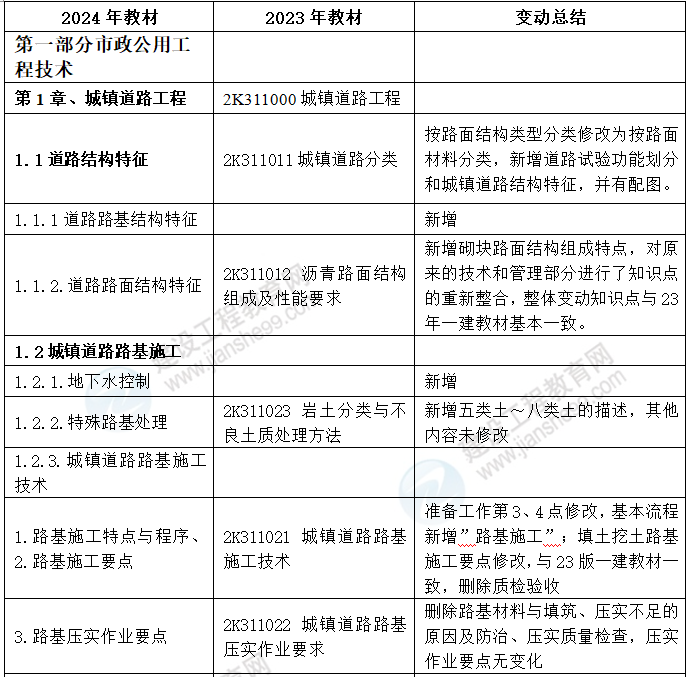 2024年二級(jí)建造師市政實(shí)務(wù)教材變動(dòng)情況表預(yù)覽