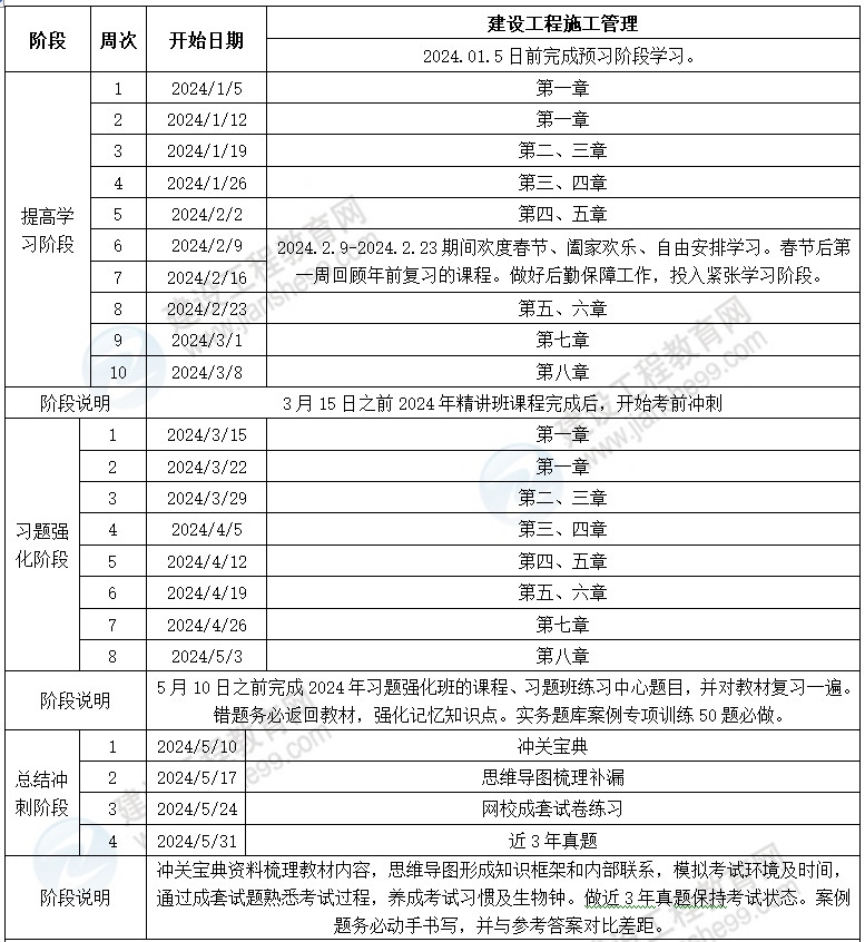 該怎么制定計劃,安排復(fù)習(xí)呢?網(wǎng)校教研團隊根據(jù)2024年全新教材整理了不同備考階段的學(xué)習(xí)計劃,供同學(xué)們參考使用。
