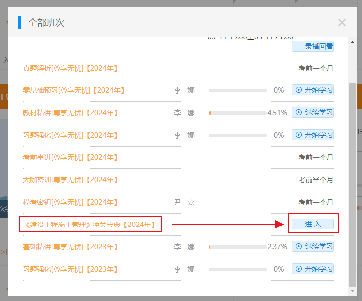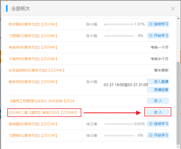 登錄后進入【我的網(wǎng)校我的家】--查看【我的課程】--點擊【全部班次】找到案例100問--點擊【進入】即可查看或下載