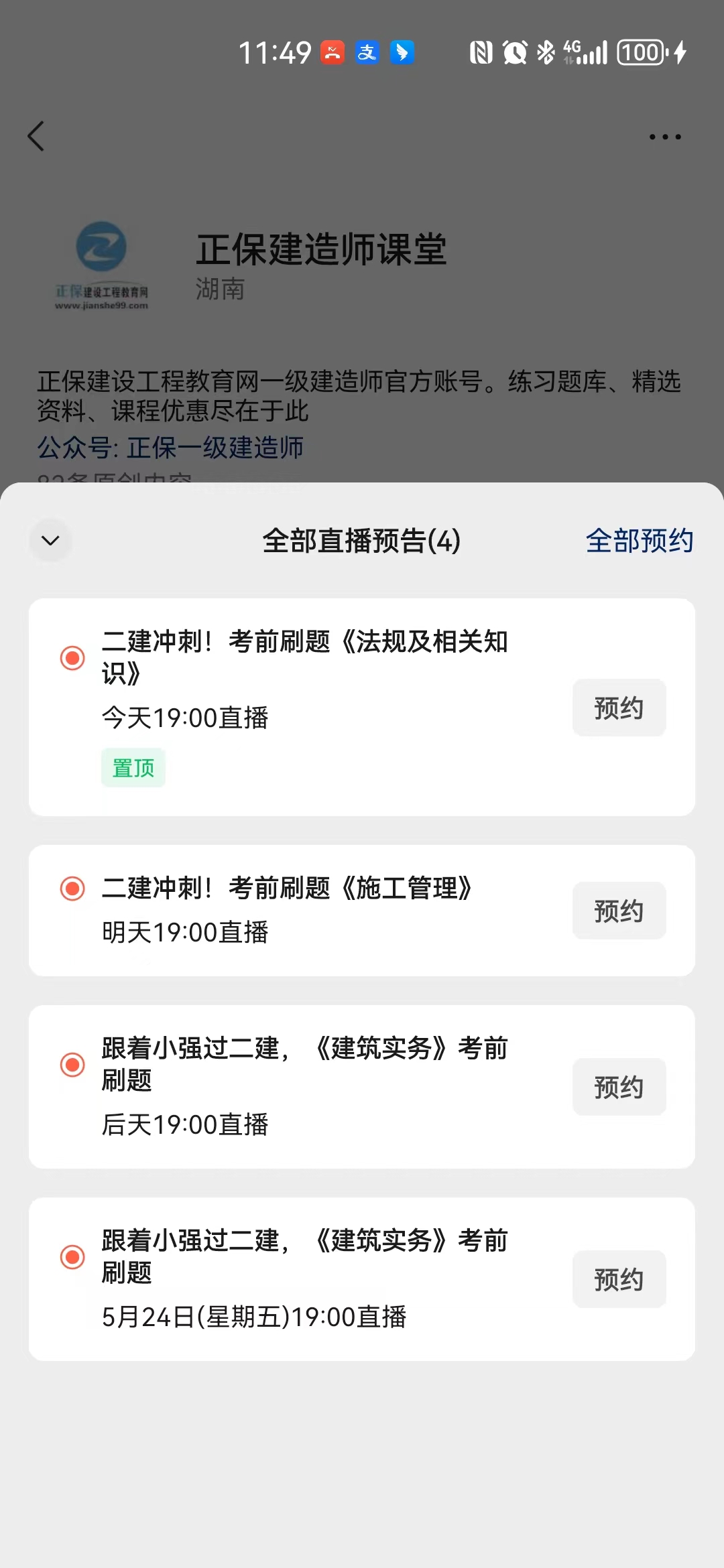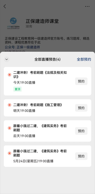 | 建筑實務 | 跟著小強過二建,《建筑實務》考前刷題 | 5月23日19:00-20:30 | 張小強 |