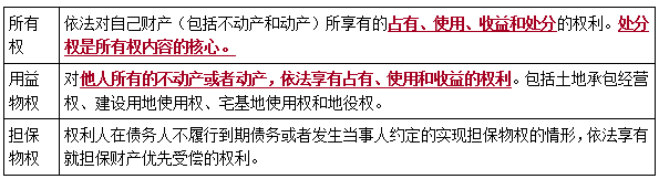 『答案解析』本題考查的是物權(quán)的種類。物權(quán)包括所有權(quán)、用益物權(quán)和擔(dān)保物權(quán)。