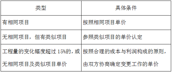 根據(jù)已標價工程量清單或預(yù)算書項目與變更項目之間的關(guān)系確定: