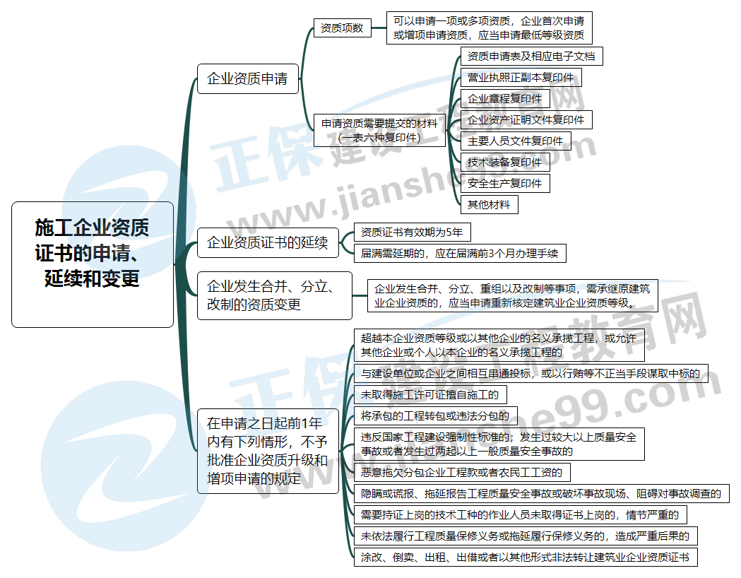 2022二建法規(guī)施工企業(yè)資質(zhì)證書的申請、延續(xù)和變更【思維導(dǎo)圖】