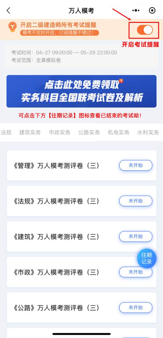 建議開通考試提醒,避免錯(cuò)過二級(jí)建造師考試重要時(shí)間節(jié)點(diǎn)。