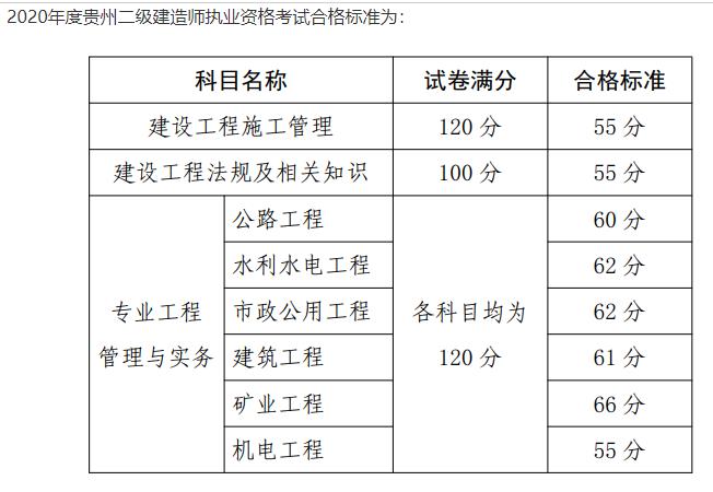 貴州省二級(jí)建造師考試成績(jī)合格標(biāo)準(zhǔn):(參考2020年)