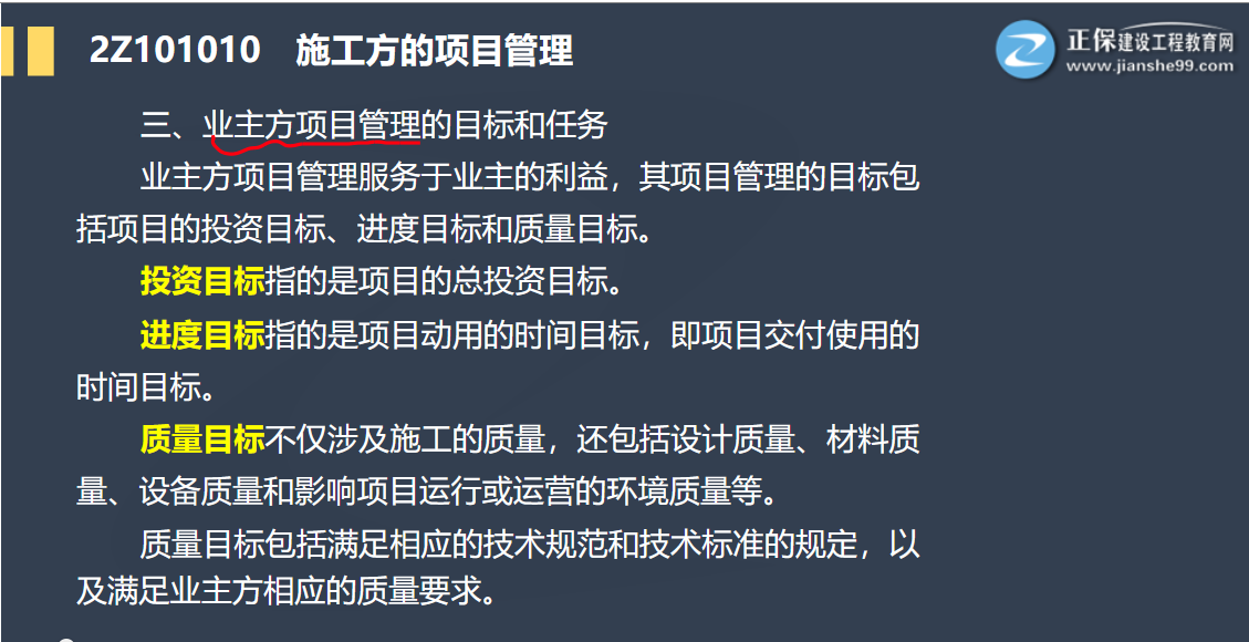【考點(diǎn)精講】二建施工管理:業(yè)主方項(xiàng)目管理的目標(biāo)和任務(wù)