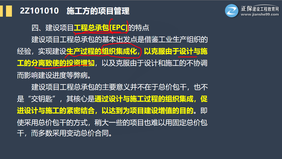 【考點(diǎn)精講】二建施工管理:建設(shè)項(xiàng)目工程總承包【EPC】的特點(diǎn)