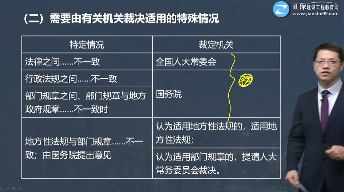 裁定機(jī)關(guān):認(rèn)為適用地方性法規(guī)的,適用地方性法規(guī);認(rèn)為適用部門規(guī)章的,提請(qǐng)人大常務(wù)委員會(huì)裁決。