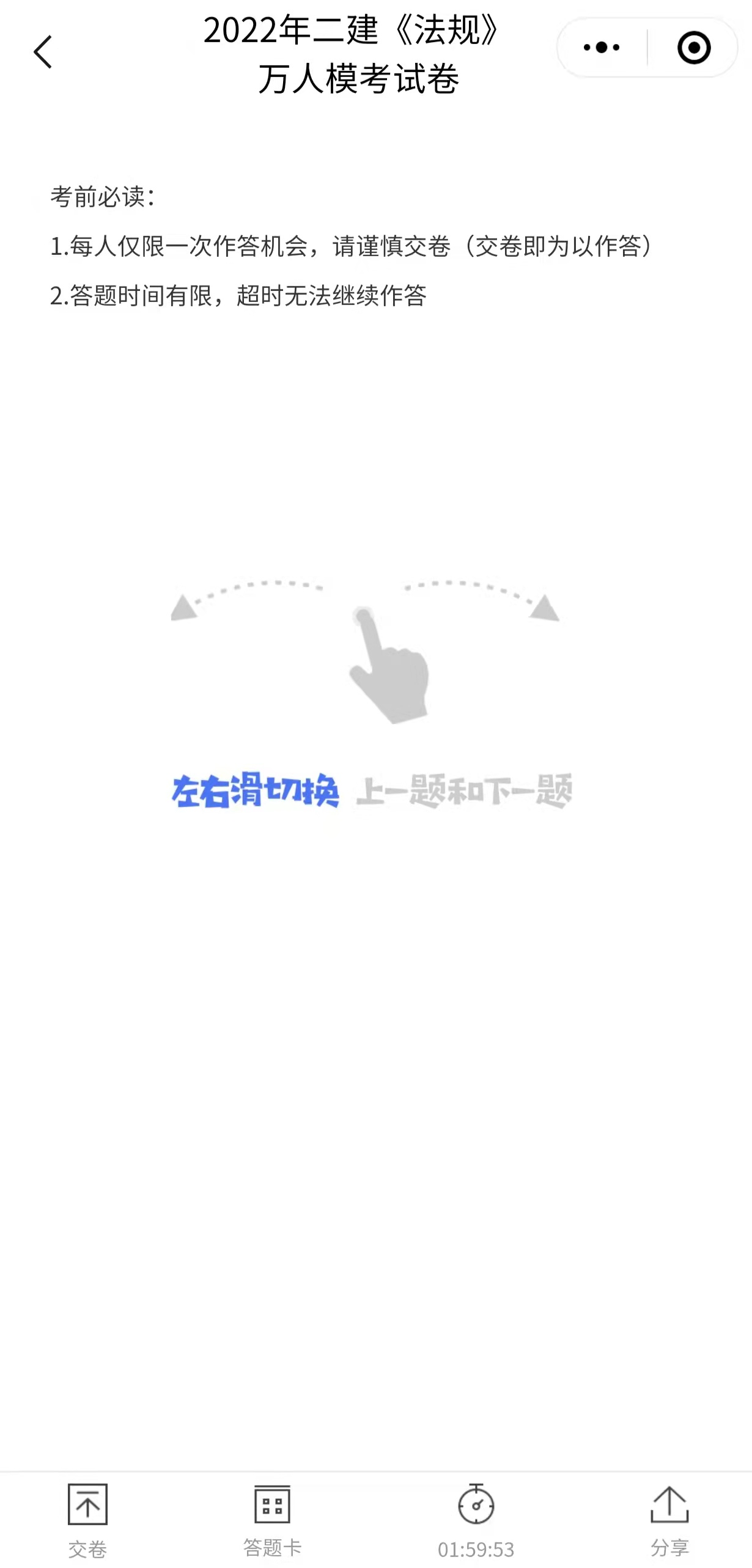 6、滑動進入答題界面,開始答題,做完之后,點擊交卷;