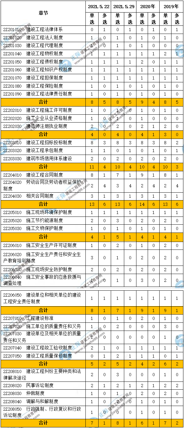 近三年二級建造師工程法規(guī)考試分值分布詳情!