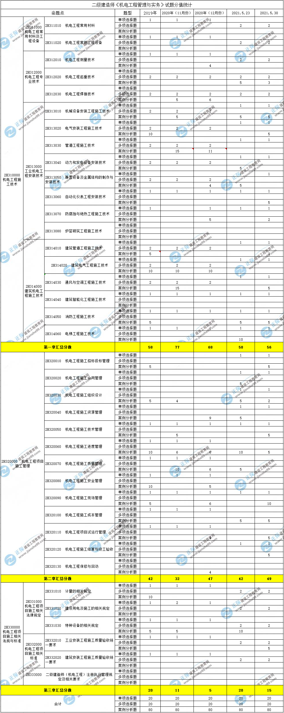 以上是二建機電近三年考試分值分布,考生們可結(jié)合分值分布情況,合理分配學(xué)習(xí)時間找到側(cè)重點!