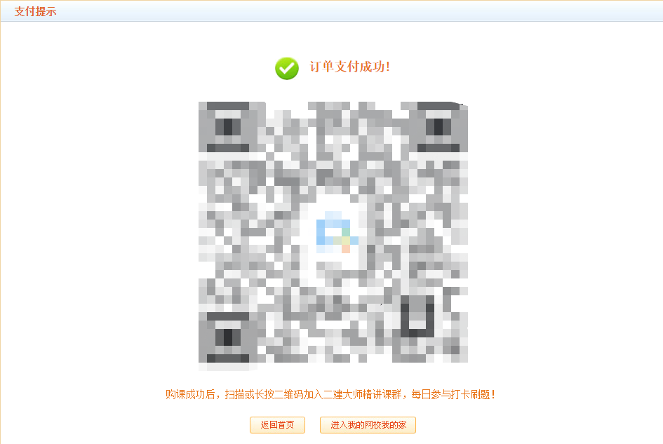 方法一:購買完課程后,在支付成功頁面上會(huì)顯示班級(jí)群二維碼