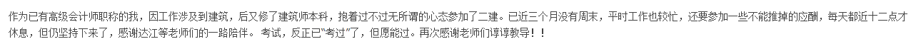 備戰(zhàn)2019年二級建造師考試的朋友們,加入建設工程教育網(wǎng),跟著老師取證輕松!查看完整學員留言>>