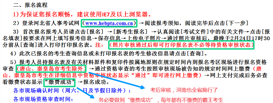 【報名流程】即使是同一個省份,各個地級市的報名流程也不同(此現(xiàn)象南方省份更為普遍,以江蘇最為顯著)。所以報名一定要認(rèn)真閱讀流程。