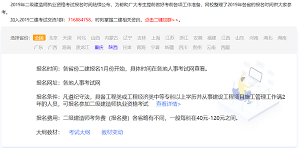 重慶開始了2019年二建考試報(bào)名,接下來,各省市會(huì)陸續(xù)公布二建考試報(bào)名時(shí)間及入口,其余各省二建報(bào)名時(shí)間,建議大家先參考2018年報(bào)名時(shí)間,也請(qǐng)大家隨時(shí)關(guān)注建設(shè)工程教育網(wǎng),以免錯(cuò)過報(bào)名時(shí)間。