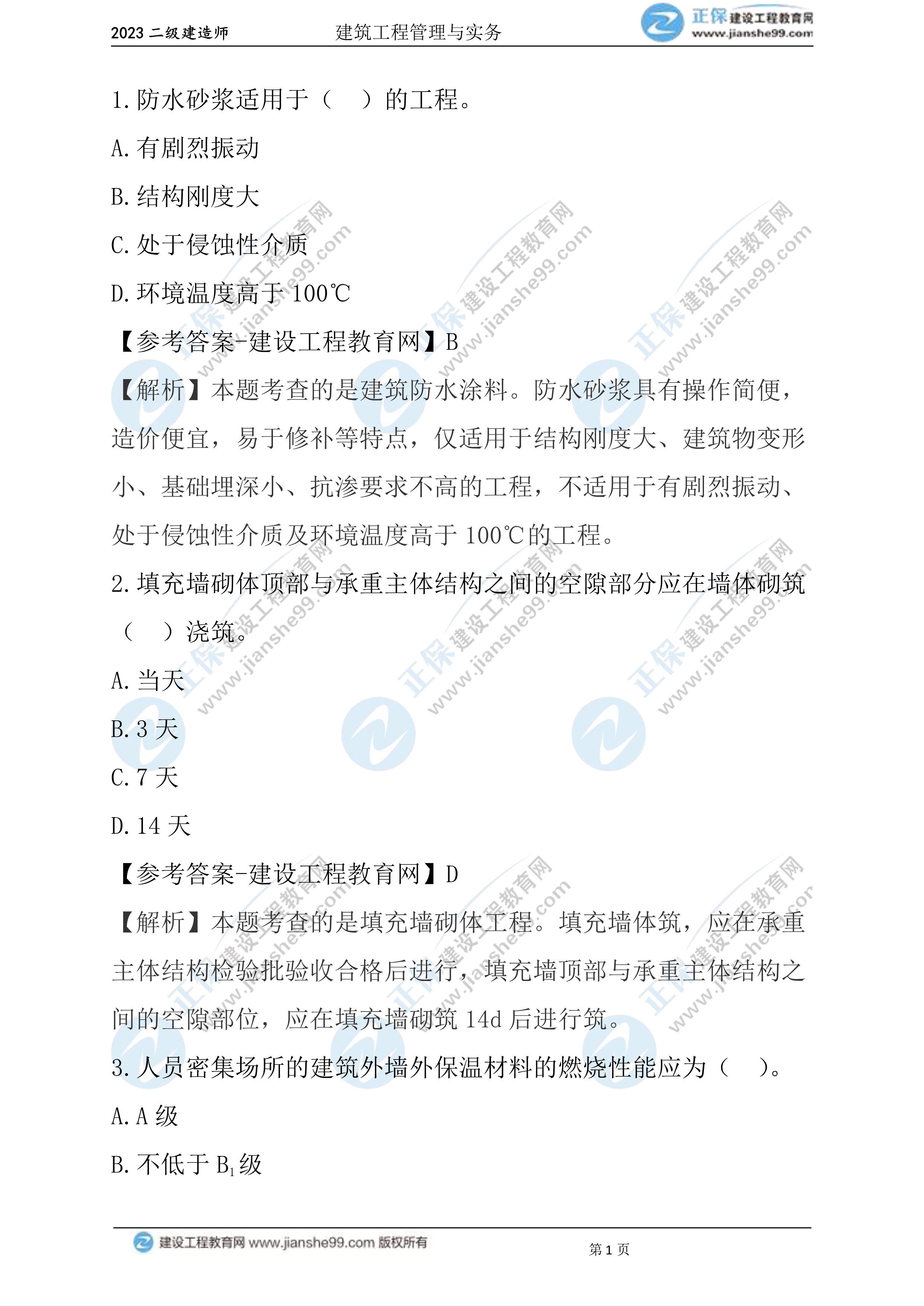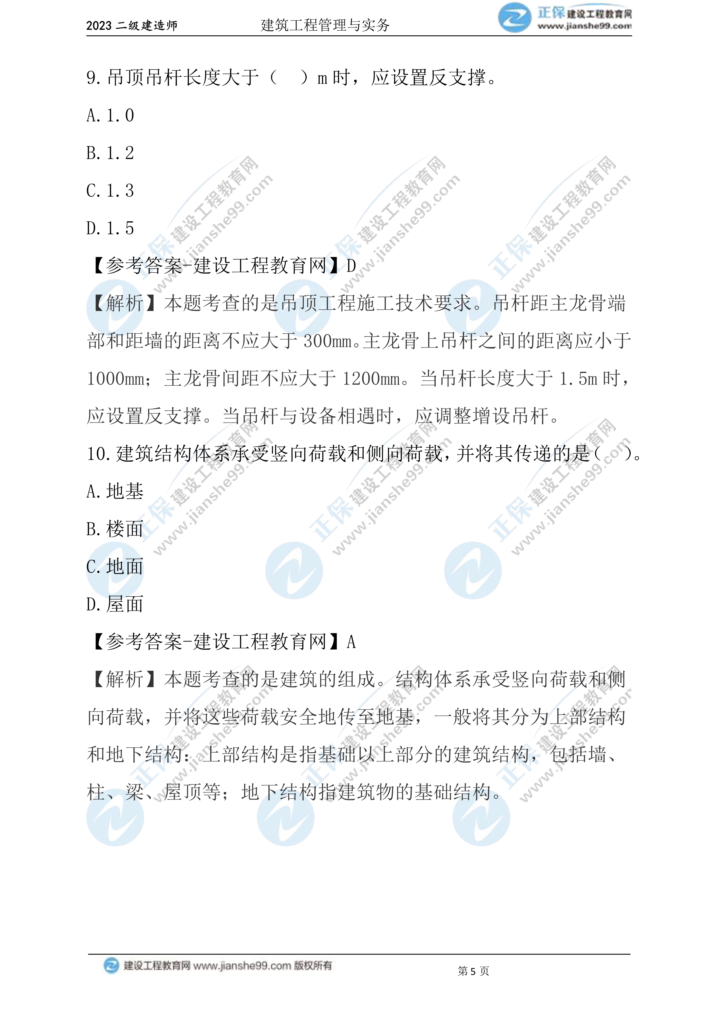 2023年二級(jí)建造師建筑實(shí)務(wù)真題及答案1-10(兩天兩批次)