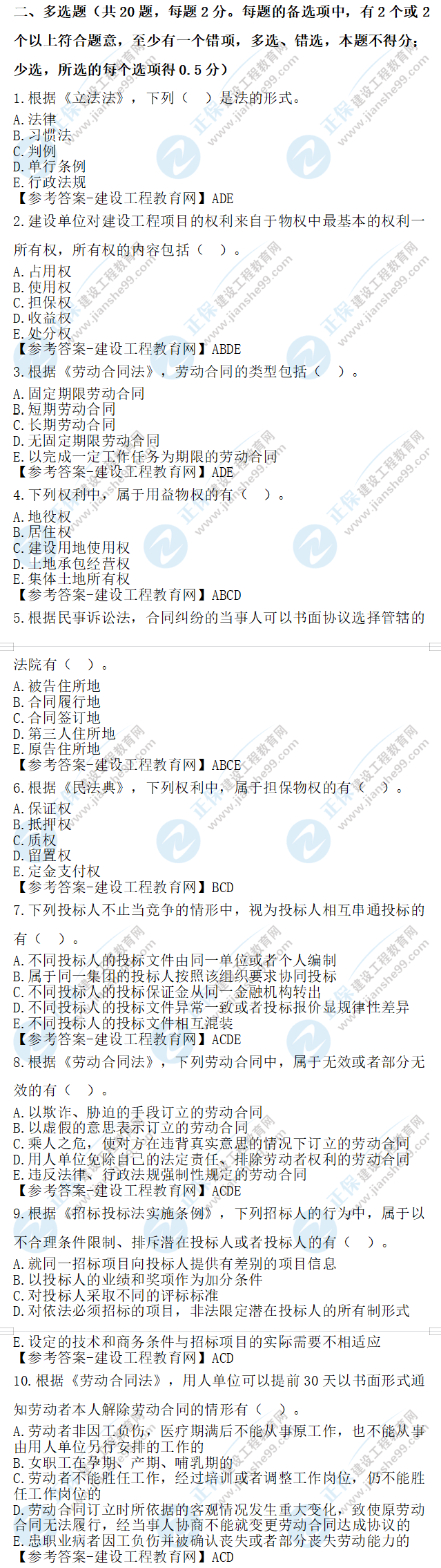 2023年二級建造師工程法規(guī)真題及答案61-70