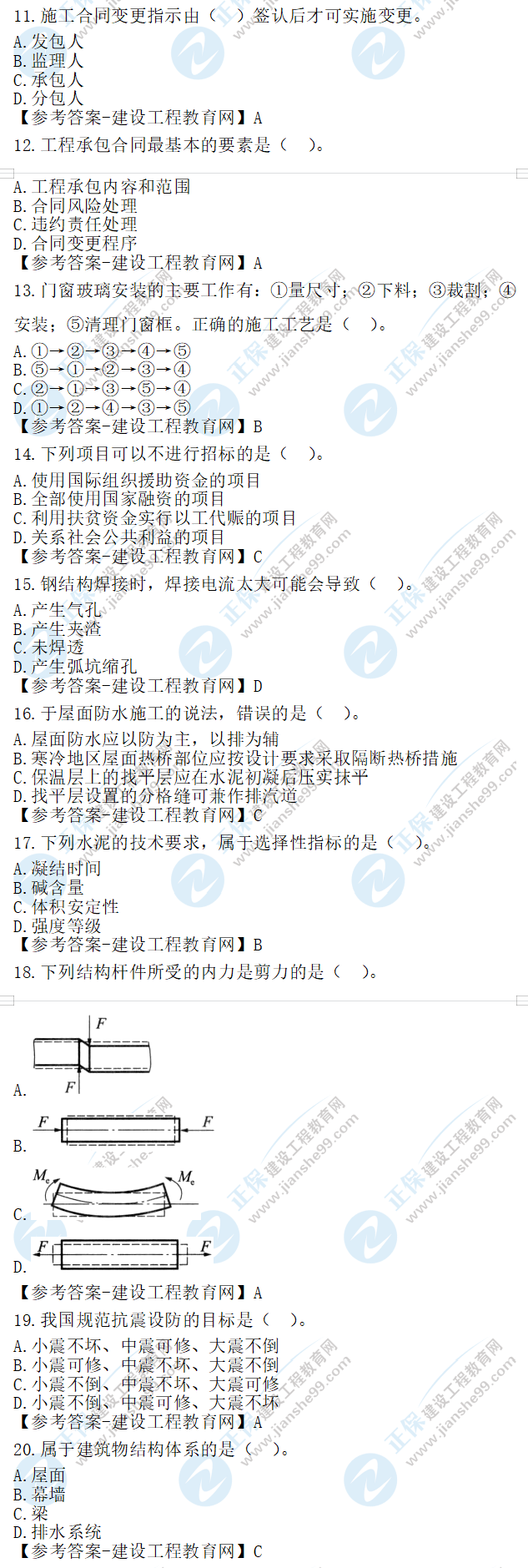 2023年二級建造師建筑實(shí)務(wù)真題及答案11-20