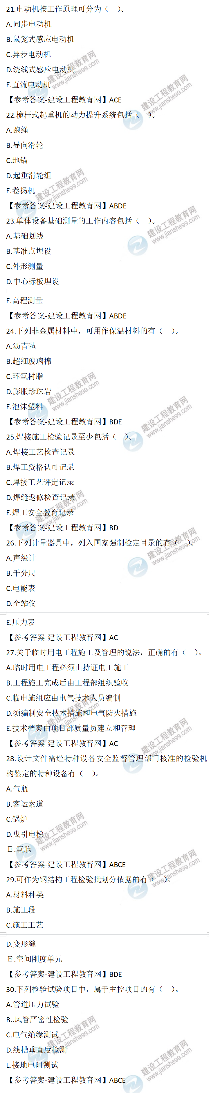 2023年二級(jí)建造師機(jī)電實(shí)務(wù)真題及答案21-30