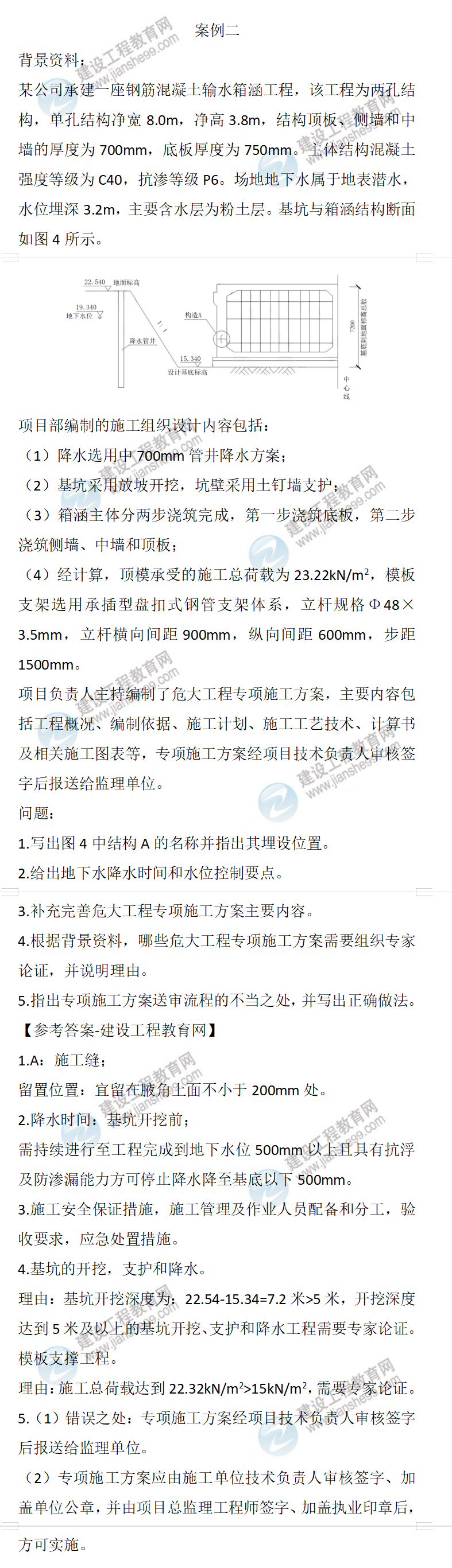 2023年二級(jí)建造師市政實(shí)務(wù)真題及答案案例二(兩天兩批次)