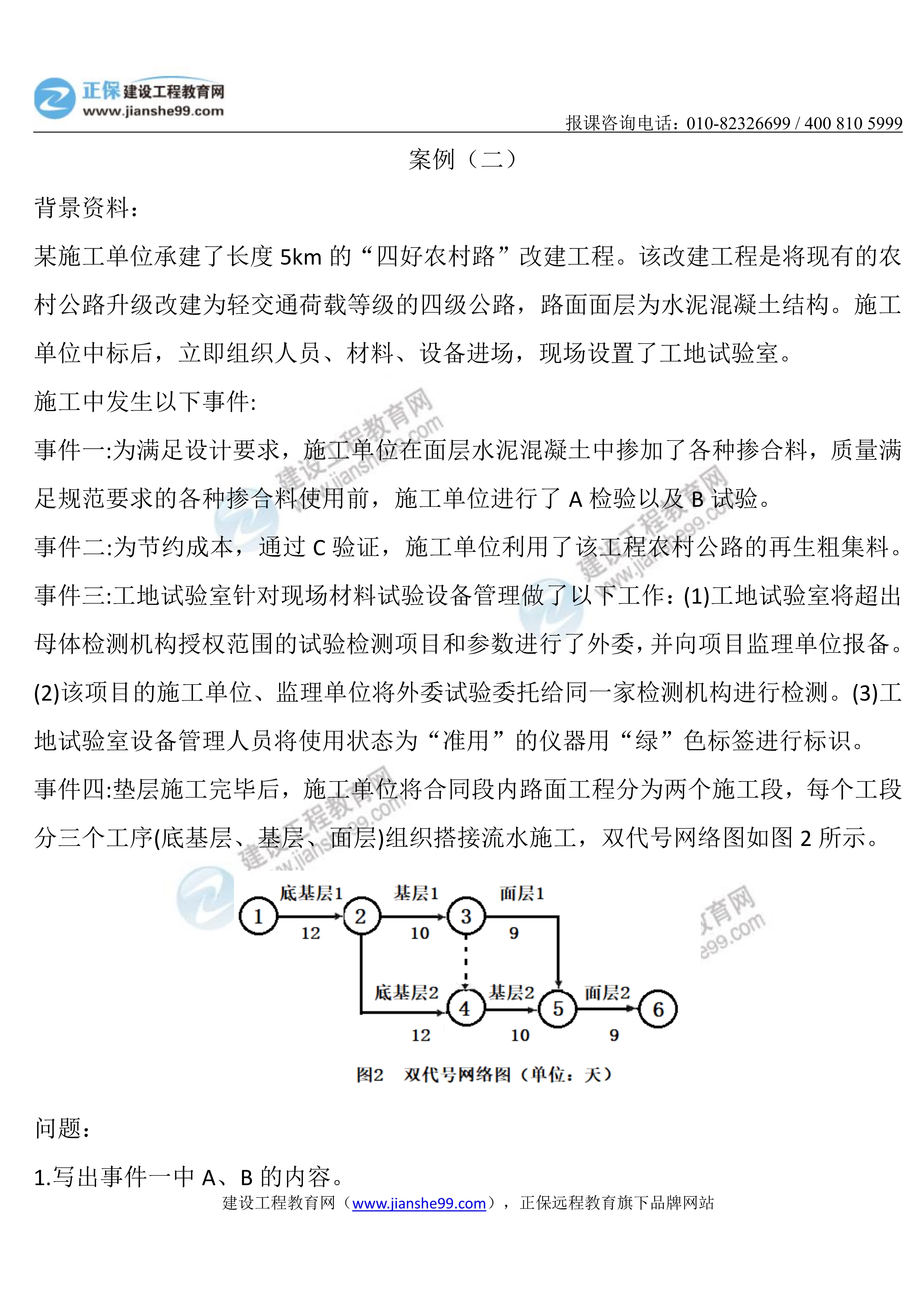 2023年二級建造師公路實務真題及答案案例二(兩天兩批次)