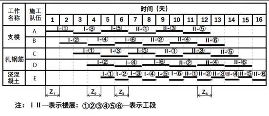 『答案解析』本題考查的是橫道圖進(jìn)度計(jì)劃的編制方法。如圖所示,第五天一層第一個(gè)施工段混凝土澆筑完畢。應(yīng)間歇一天再進(jìn)行第二層第一個(gè)施工段的支模。所以第六天位置(Z3)為層間間歇。