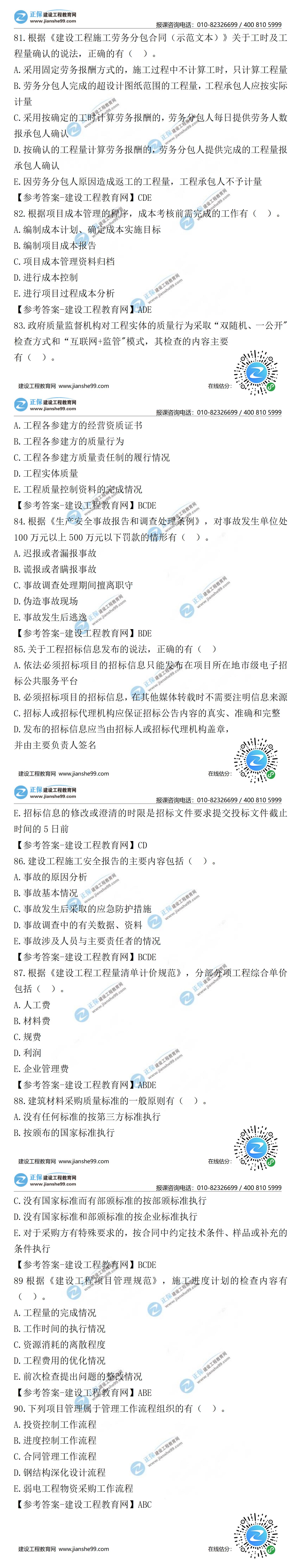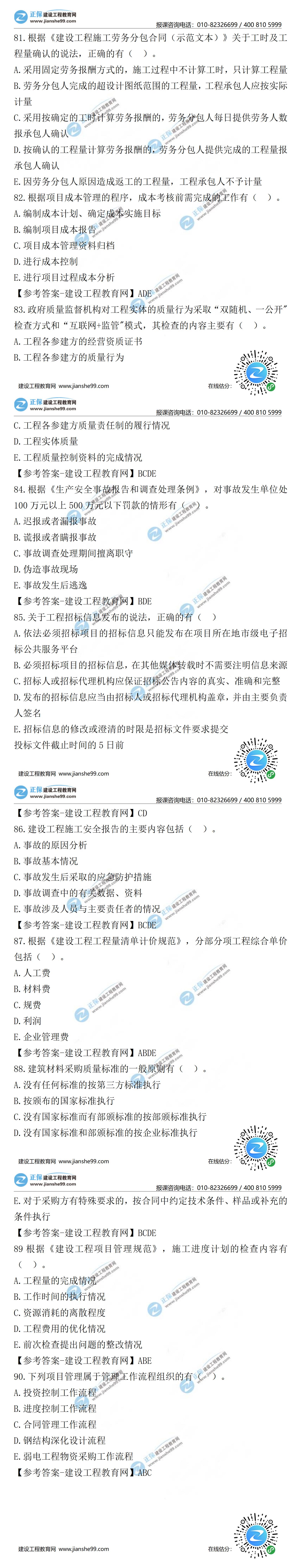 2021年二級(jí)建造師施工管理試題及答案第81-90題