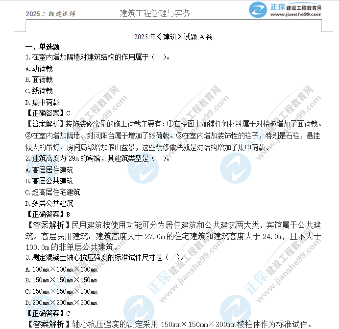 2025年二級建造師建筑實務真題及答案解析
