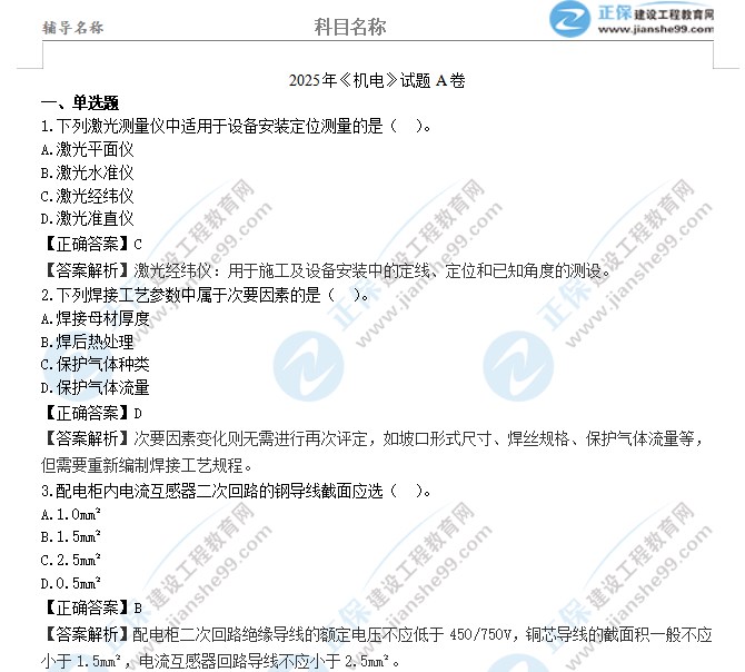 2025年二級(jí)建造師考試于5月10-11日舉行,考試結(jié)束后同學(xué)們最為關(guān)注的是2025二建真題及答案解析。建設(shè)工程教育網(wǎng)在二建考后收集整理2025年二級(jí)建造師考試真題并提供考試真題答案解析。歡迎參加025年二級(jí)建造師考試的考生們聯(lián)系網(wǎng)校提供考試題目,網(wǎng)校會(huì)盡快為大家整理答案,供考生們估分參考。以下為2025年二級(jí)建造師機(jī)電實(shí)務(wù)真題及答案解析,希望能為廣大二建考生朋友帶來(lái)幫助。