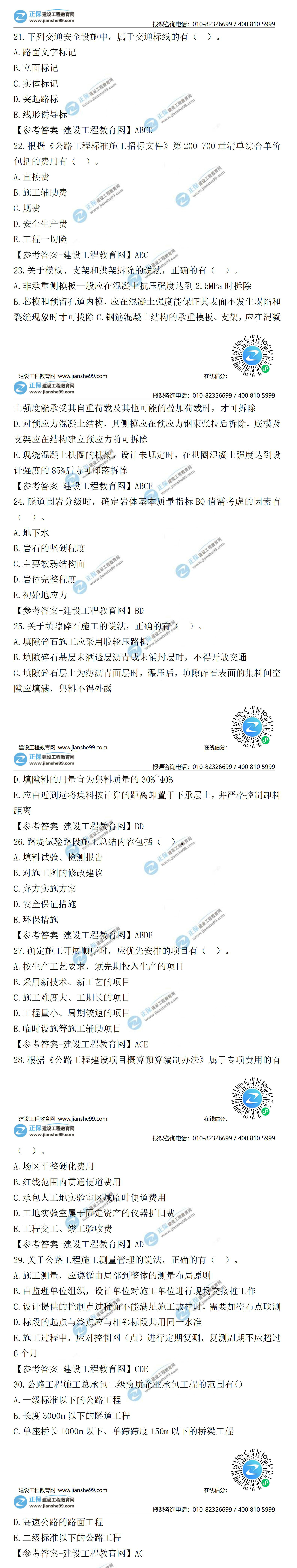 2021年二級(jí)建造師公路工程實(shí)務(wù)試題及答案第21-30題(30日)