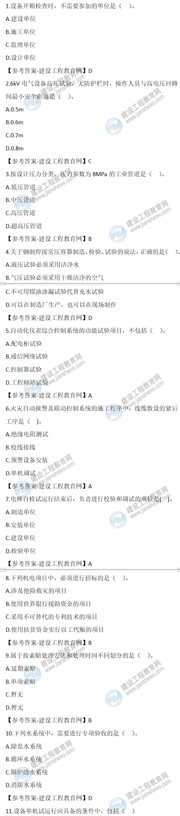 2022年二級建造師機(jī)電實(shí)務(wù)試題及答案第1-10題(12日2天2批次)