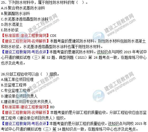 2015年二級(jí)建造師《建筑工程管理與實(shí)務(wù)》答案及解析由老師整理而成,部分網(wǎng)站未經(jīng)許可擅自轉(zhuǎn)載、抄襲,造成內(nèi)容有所缺失或錯(cuò)誤,請(qǐng)大家以建設(shè)工程教育網(wǎng)發(fā)布為準(zhǔn)!2015二建試題答案解析
