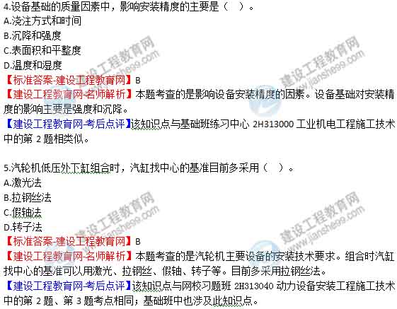 【建設(shè)工程教育網(wǎng)-考后點評】該知識點與基礎(chǔ)班練習中心2H312000機電工程專業(yè)技術(shù)中第43、44、45題相類似。