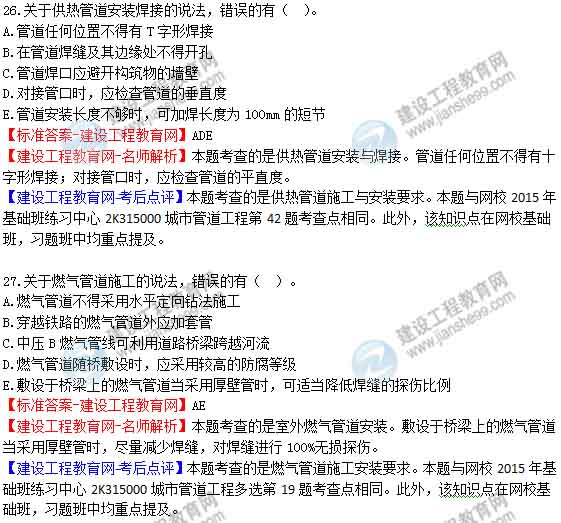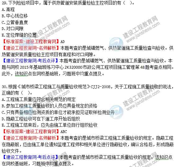 2015年二級建造師《市政公用工程管理與實務(wù)》答案及解析由老師整理而成,部分網(wǎng)站未經(jīng)許可擅自轉(zhuǎn)載、抄襲,造成內(nèi)容有所缺失或錯誤,請大家以建設(shè)工程教育網(wǎng)發(fā)布為準!二建試題答案