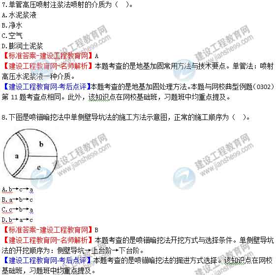 【建設(shè)工程教育網(wǎng)-考后點評】本題考查的是小導(dǎo)管注漿加固技術(shù)。本題與網(wǎng)校2015年基礎(chǔ)班練習(xí)中心2K313000城市軌道交通工程第3、33、35題、習(xí)題班練習(xí)中心2K313000城市軌道交通工程第27、29題、典型例題(0301)第5題、2015年模擬試題三第9題考查點相同。此外,該知識點在網(wǎng)?;A(chǔ)班,習(xí)題班中均重點提及。