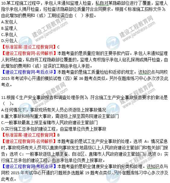 2015年二級(jí)建造師《建設(shè)工程施工管理》答案及解析由老師整理而成,部分網(wǎng)站未經(jīng)許可擅自轉(zhuǎn)載、抄襲,造成內(nèi)容有所缺失或錯(cuò)誤,請(qǐng)大家以建設(shè)工程教育網(wǎng)發(fā)布為準(zhǔn)!2