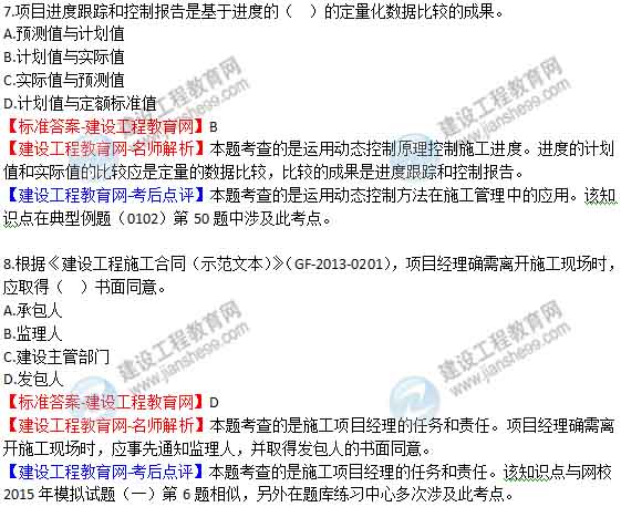 【建設(shè)工程教育網(wǎng)-考后點(diǎn)評(píng)】本題考查的是施工項(xiàng)目經(jīng)理的任務(wù)和責(zé)任。該知識(shí)點(diǎn)與網(wǎng)校2015年基礎(chǔ)班練習(xí)中心第31題基本屬于原題。