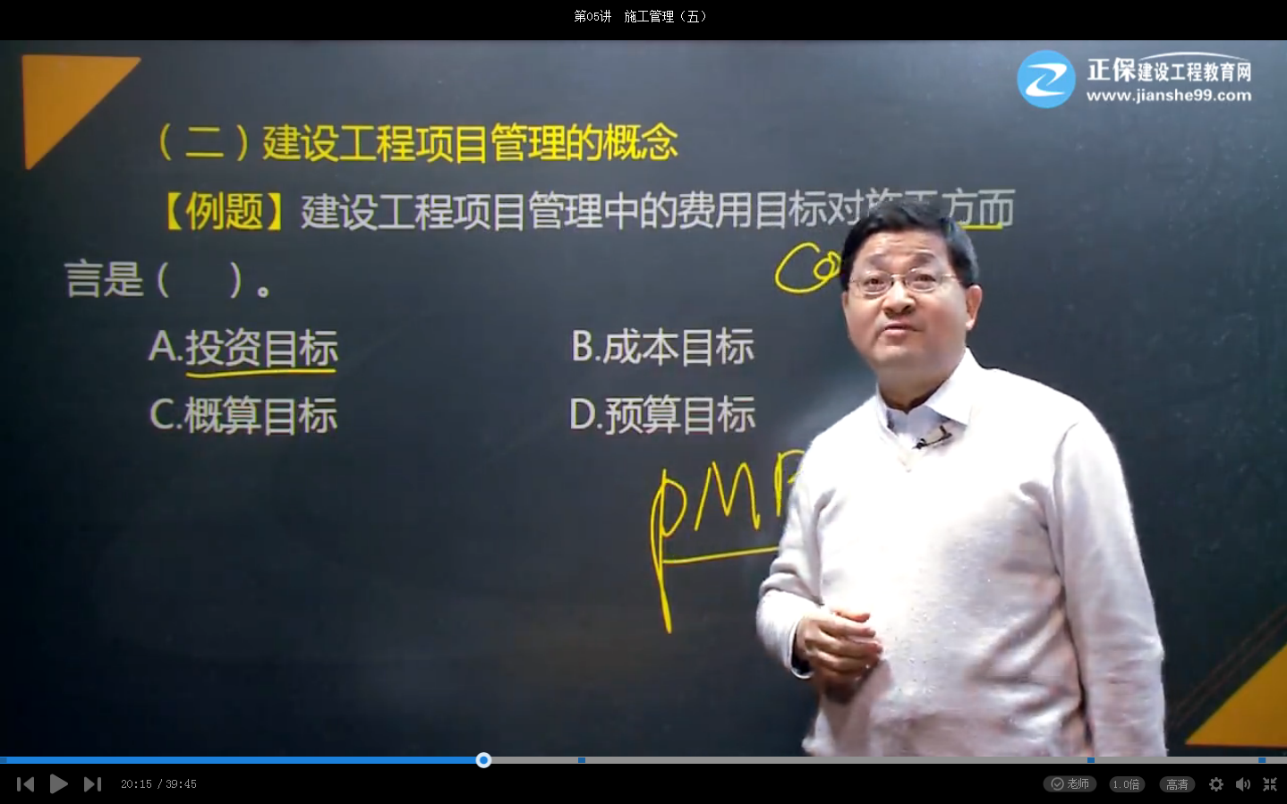 【答案解析】本題考查的是建設(shè)工程項(xiàng)目管理的類型。“費(fèi)用目標(biāo)”對業(yè)主而言是投資目標(biāo),對施工方而言是成本目標(biāo)。參見教材P1。