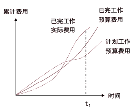 某工程的贏得值曲線如下圖,關(guān)于t1時點成本和進(jìn)度狀態(tài)的說法,正確的是(?。?/p>
