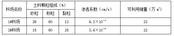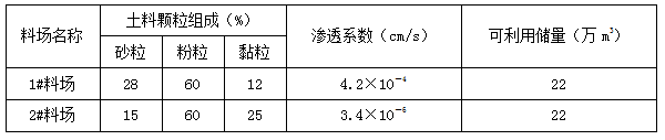 表2 料場土料情況