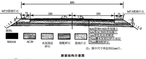 某施工單位承接了K0+000~K48+000段二級公路路面施工,路面結(jié)構(gòu)示意圖如下圖所示,該公路靠近三峽某風(fēng)景旅游區(qū),沿線居民較多。