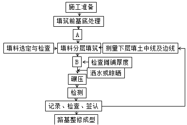 根據(jù)施工組織設(shè)計(jì)要求,部分路基填筑利用隧道洞渣作為路基填料,一般路段采用分層填筑方法施工,土石方分層填筑施工工藝流程如下圖所示。