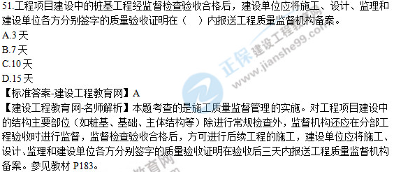 2019年二級(jí)建造師《建設(shè)工程施工管理》試題及答案解析51-55