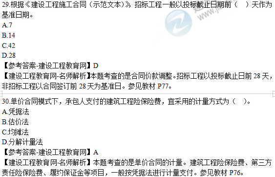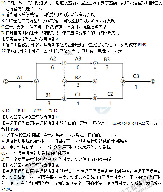 2019年二級(jí)建造師《建設(shè)工程施工管理》試題及答案解析26-30